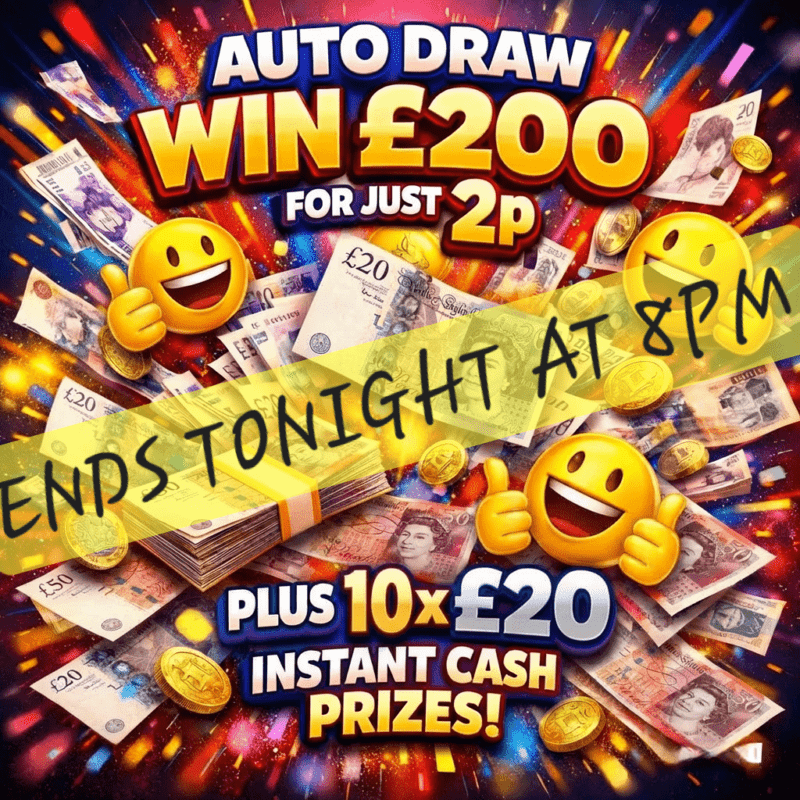 WIN £200 CASH PRIZE PLUS 10 X £20 INSTANT PRIZES AUTO-DRAW ONLY 2P