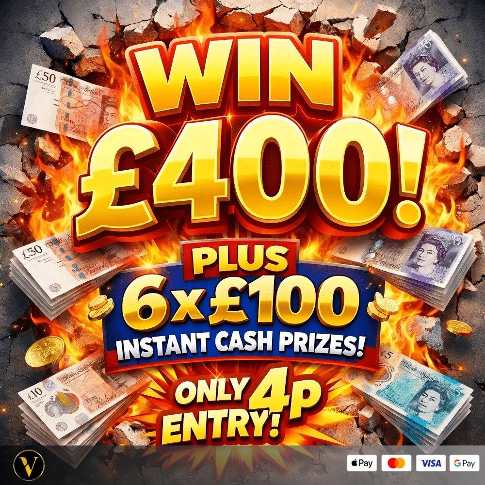| Prize | £400 MAIN PRIZE PLUS 6 X £100 INSTANT PRIZES ONLY 4P |