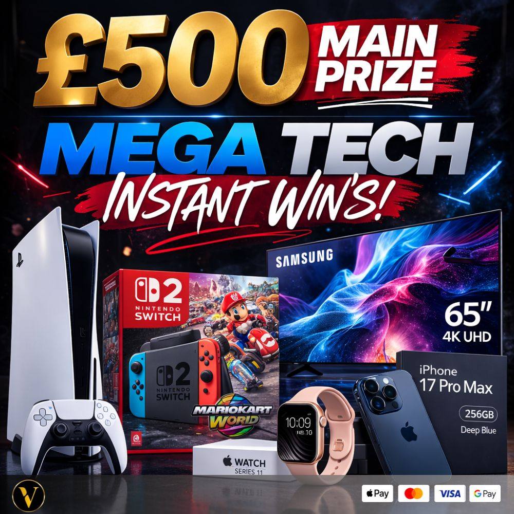 💥 £500 MAIN PRIZE up for grabs PLUS the chance to win incredible tech INSTANTLY!