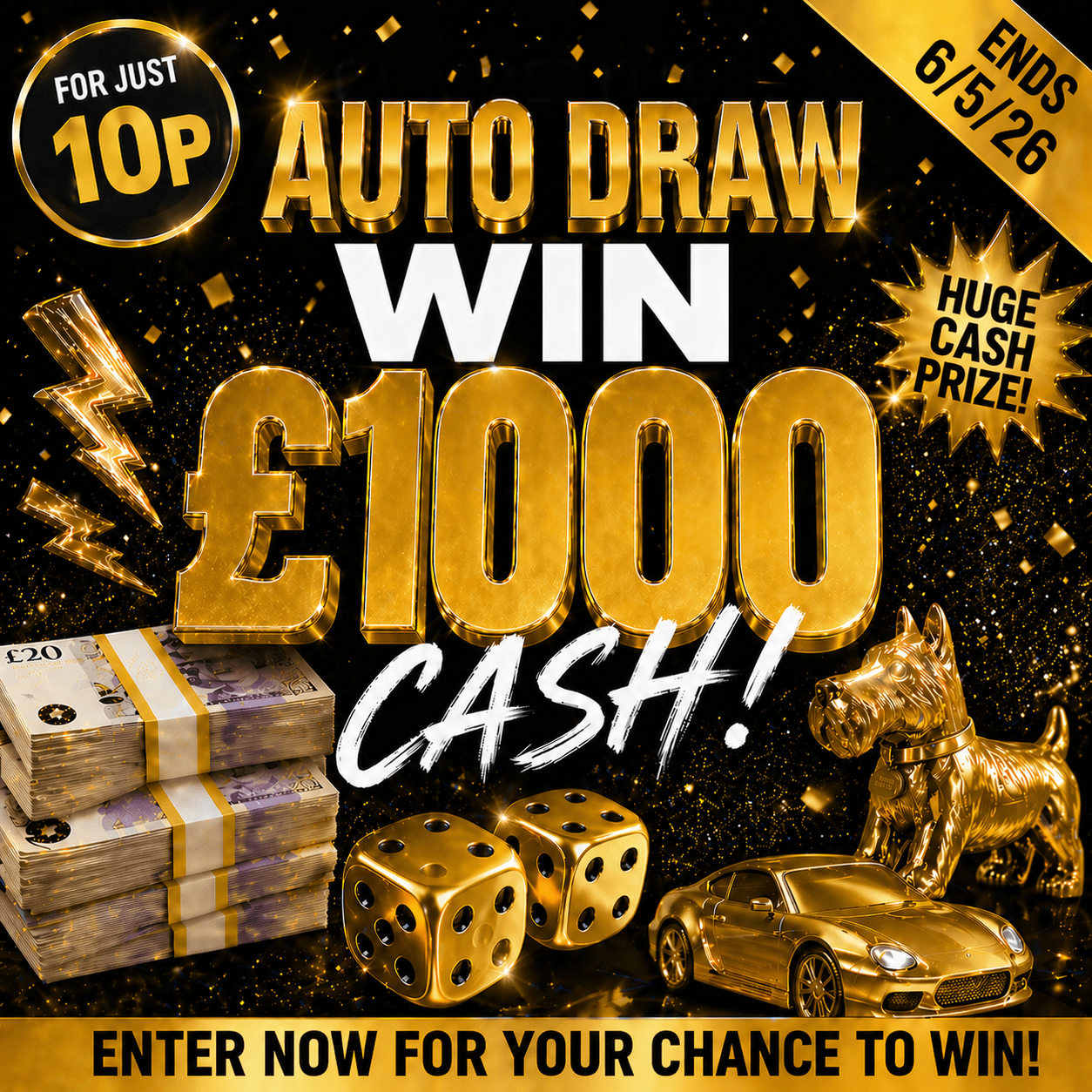 AUTO-DRAW £1,000 CASH FOR JUST 10P ENDS 6/5/26