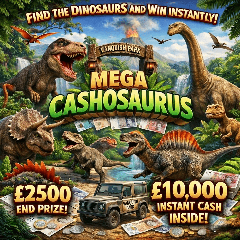 MEGA CASHOSAURUS £2,500 END PRIZE PLUS £10,000 INSTANT CASH