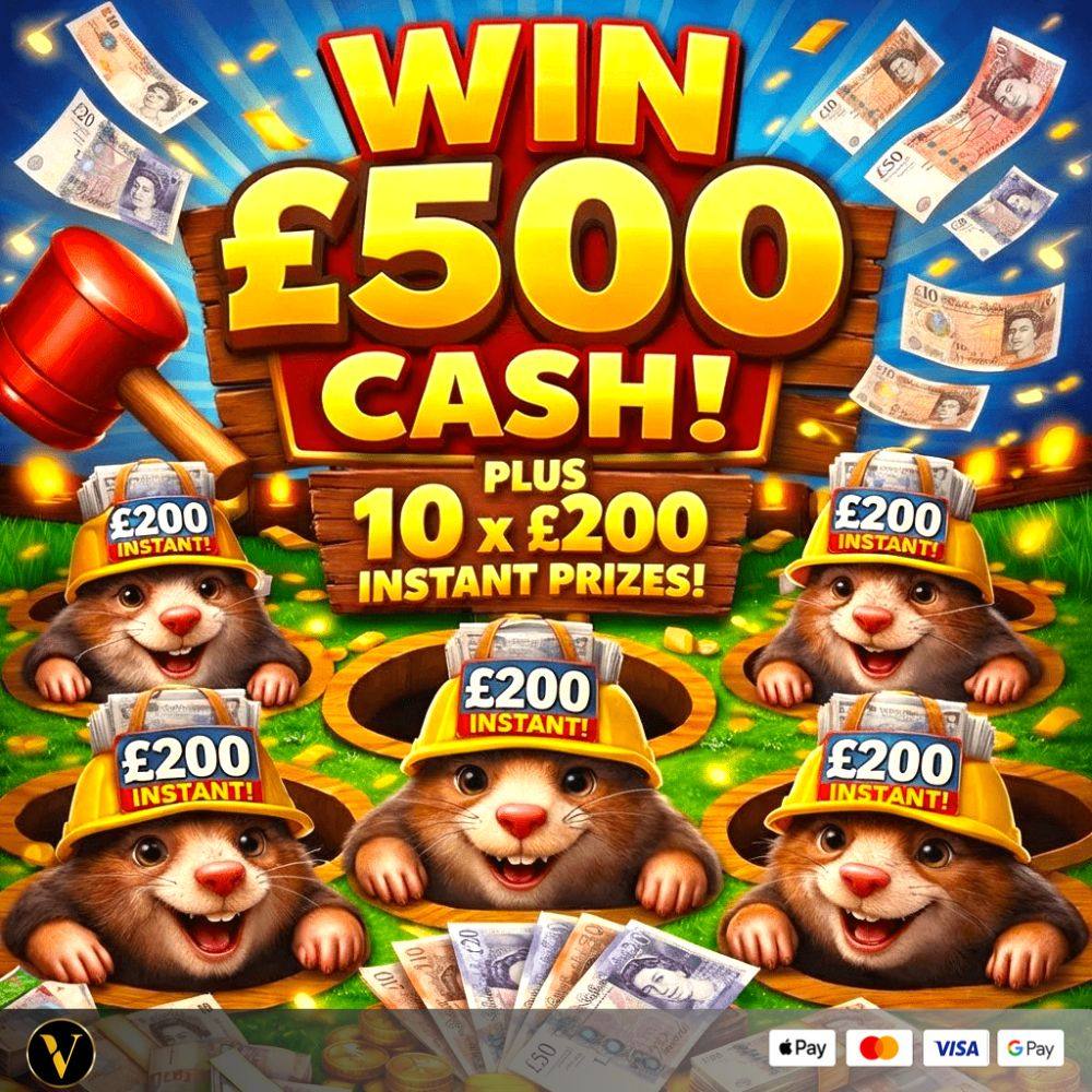 WHACK A MOLE WIN £200 INSTANTLY – £500 MAIN PRIZE ONLY 40P