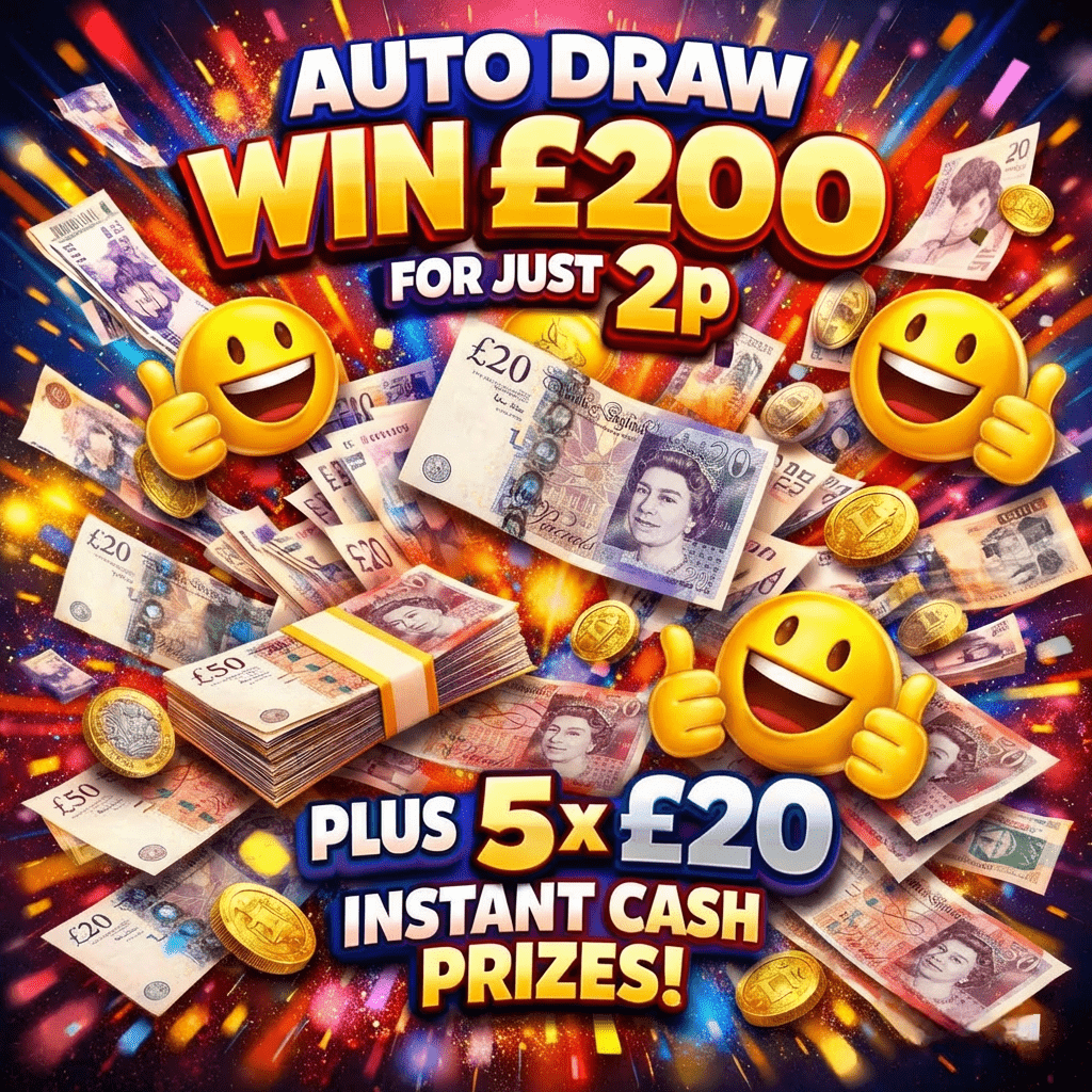 Prize WIN £200 CASH PRIZE PLUS 5 X £20 INSTANT PRIZES AUTO-DRAW ONLY 2P